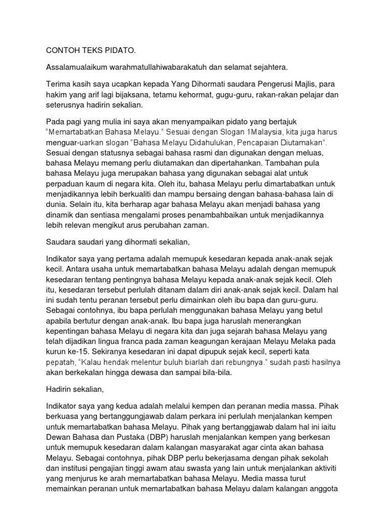 Teks Pidato Bahasa Melayu 2017 Pdf