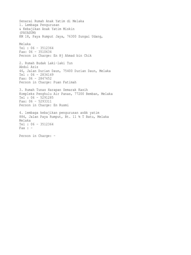 Senarai Rumah Anak Yatim Di Melaka Pdf